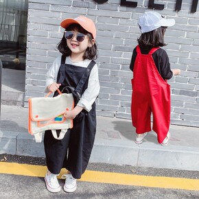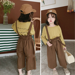 女童裤子韩版休闲阔腿裤背带裤20春秋装新款外贸童装...
