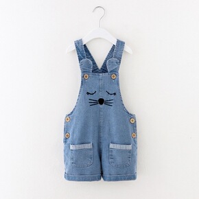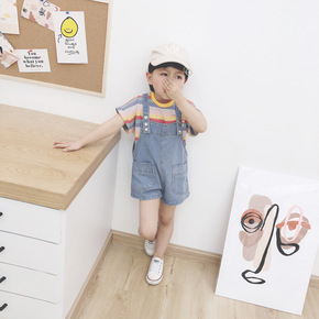 童裤2022夏装新款韩版儿童纯色牛仔背带短裤男童女...