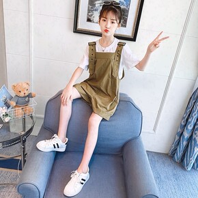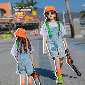 女童夏款背带裤套装中大童夏装薄款短裤网红吊带裤儿童...