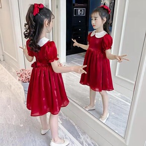 女童连衣裙2022新款夏公主裙仙女裙娃娃领儿童裙子...