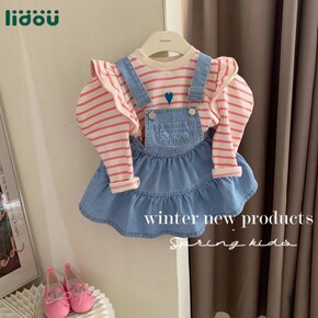 韩国童装洋气牛仔背带裙2022春秋装新款女童半身裙...