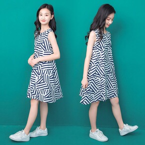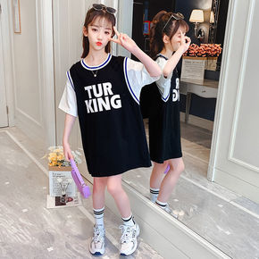 儿童夏装小学生中大童假两件T恤裙中长款女童宽松洋气...
