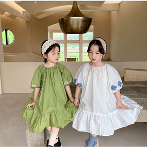 儿童甜美连衣裙夏款女童花朵刺绣裙子童裙3-8岁童装...