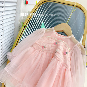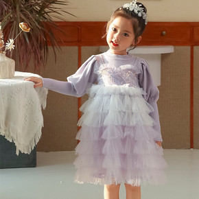 女童蛋糕裙秋季新款儿童网纱连衣裙女童泡泡袖公主裙网...