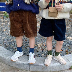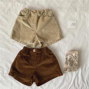 男童女童韩版纯色灯芯绒短裤2021秋款新款童装儿童...