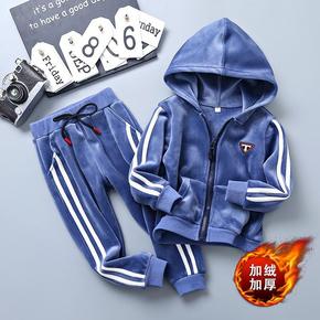 男童春秋加绒套装中大童帅洋气加厚工装儿童秋冬季韩版...