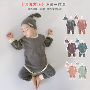 2022秋冬新款韩版童装保暖内衣儿童秋衣秋裤纯色净...