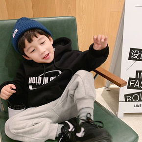 熊仔家2022秋冬新款儿童纯棉针织毛圈卫衣韩版植绒...
