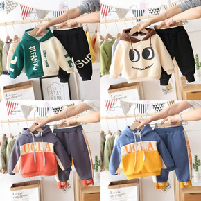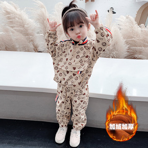 2022秋冬季跨境时尚儿童套装加绒保暖金丝绒男女童...