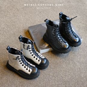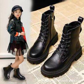 2021秋季新款马丁靴系带男女童复古前系高帮短筒靴...