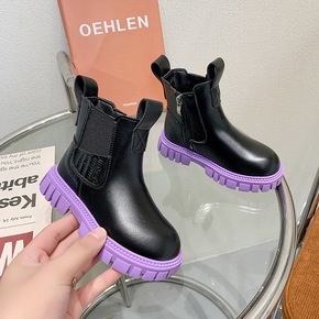 儿童2021新款秋冬高帮靴子女童单靴加绒高帮靴马丁...
