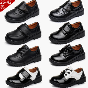 儿童皮鞋童鞋黑色黑白色学校学生表演鞋韩版英伦休闲绑...