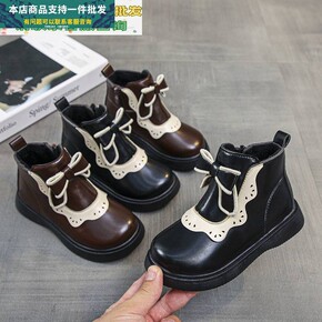 女童鞋马丁靴2021秋季儿童黑色短靴皮靴秋冬烟筒靴...