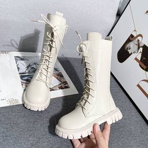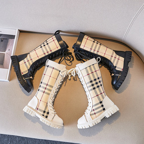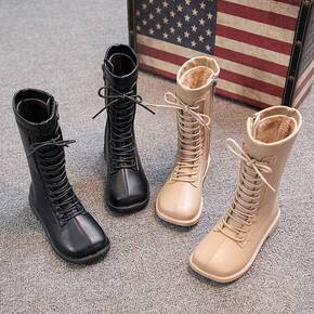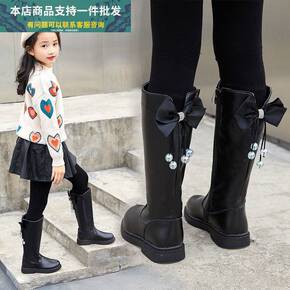 高筒靴子女童马丁靴秋冬新款英伦风单靴小女孩加绒长筒...