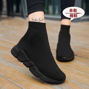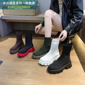 袜子鞋女2022新款马丁靴厚底透气针织弹力袜靴英伦...