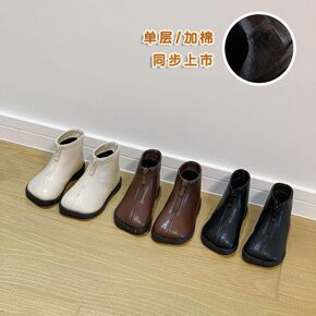 前拉链时尚脚趾马丁靴儿童靴子年新爆款韩版女童方头软...