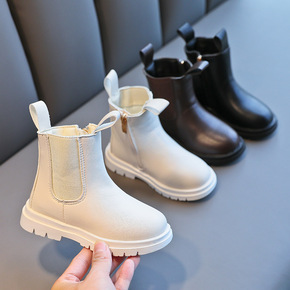 女童公主蝴蝶结马丁靴短靴2022秋春加绒保暖棉鞋雪...