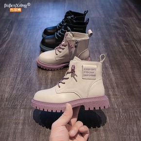 2021春秋季新款童鞋儿童马丁靴女童中帮圆头鞋男童...