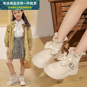 秋冬新款女童靴子软底公主鞋蝴蝶结加绒袜子靴韩版百搭...