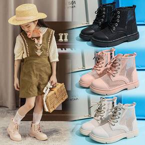 女童马丁靴2021新款春秋公主中大童外贸镂空短靴罗...