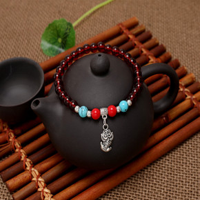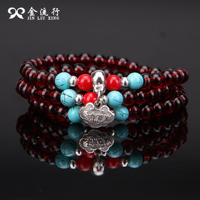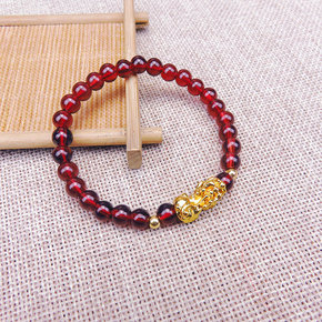 仿石榴石三圈4mm6mm貔貅吊坠手链 情侣时尚小礼...
