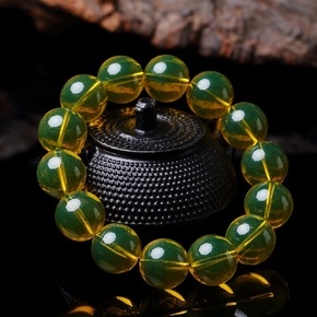 金珀利墨西哥蓝珀手串单圈 原石原矿蜜蜡琥珀正圆手链...