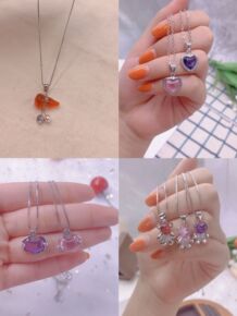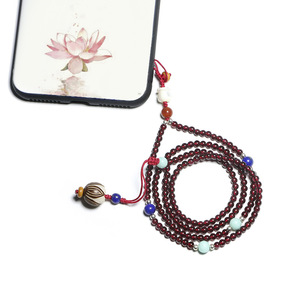 创意手机挂绳紫牙乌酒红石榴石项链多圈水晶饰品手机链...