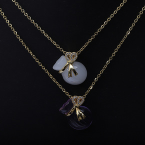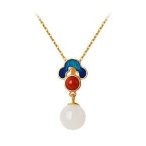 钛钢链女款不掉色锁骨链福袋项链古法金镶玉吊坠时尚O...