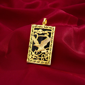 金店同款仿金镶玉 鹏程万里黑曜石绿色鹰吊牌项链 黄...