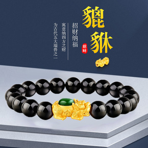 主推热款仿沙金玛瑙圆珠貔貅手链女式黄铜镀金石榴石手...