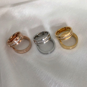 新款卡家钛钢戒指女欧美时尚流行款不锈钢满天星玫瑰金...
