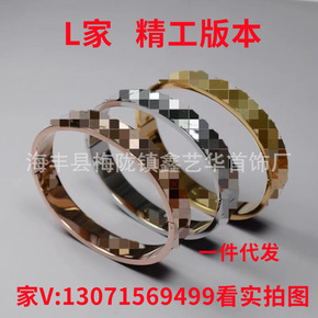 欧美外贸钛钢手镯男女印花老花经典镀黄金镶钻时尚饰品...