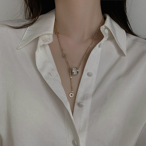 幸运花轮镶锆石吊坠项链2021秋季新款锁骨链女士项...