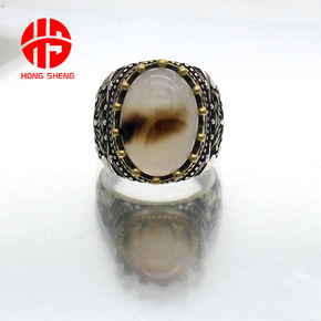 跨境电商外贸天然玛瑙宝石男款戒指 925银欧美电金...