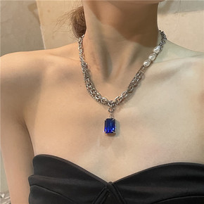 欧美法式复古宫廷风双层链条珍珠蓝宝石锁骨链女 IN...