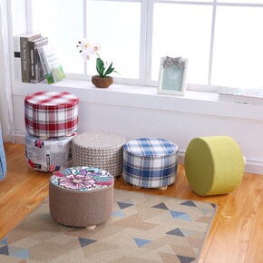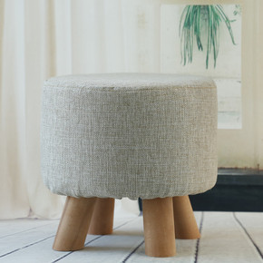 聚美实木布艺换鞋凳板凳家用简约现代圆墩脚踏茶几凳小...