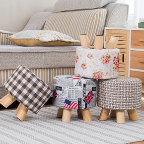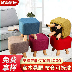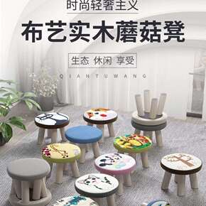 布艺实木小圆凳子家用客厅简约现代创意防滑可叠放矮凳...