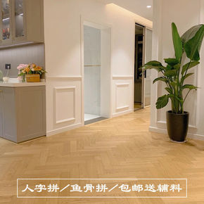 橡木鱼骨拼人字拼多层实木复合木地板家用原木灰色防水...