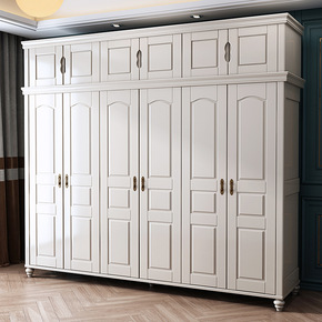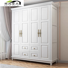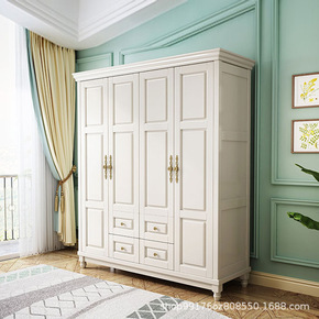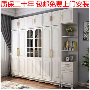 美式实木衣柜三四五门储物加顶经济型白色家用现代卧室...