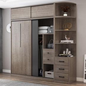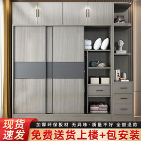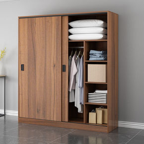 推拉门衣柜家用卧室现代简约原木风出租房用结实简易收...