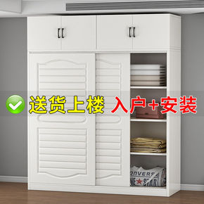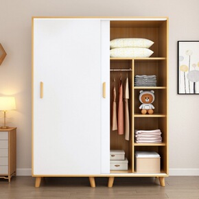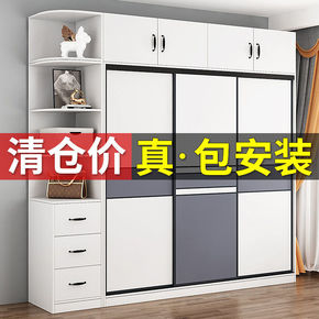 衣柜现代简约家用卧室组装实木推拉门经济型儿童储物柜...