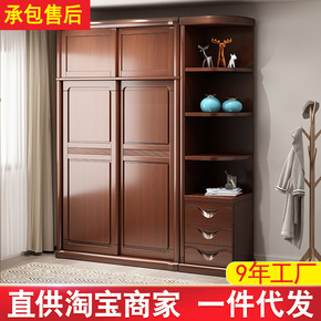 实木衣柜家用卧室现代简约推拉门衣橱储物柜免安装组装...