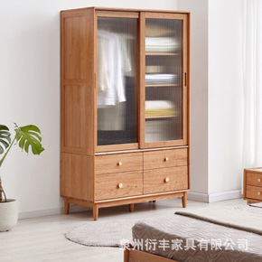 北欧实木衣柜卧室简约双层抽屉大衣柜ins风酒店民宿...