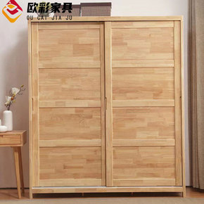 现代简约实木衣柜二门三门推拉门经济型家具原木移门家...