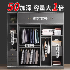 顶天立地衣柜实木家用卧室现代简约衣橱组装挂衣柜推拉...