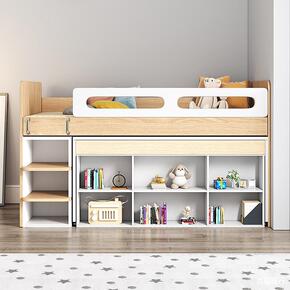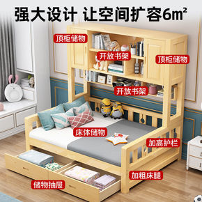 实木衣柜床一体省空间儿童床书柜组合床多功能带柜子男...