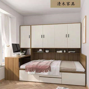 榻榻米床衣柜一体床小户型多功能带书桌衣柜组合收纳床...