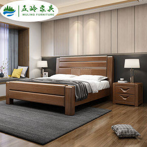 现代简约中式实木床1.8米 胡桃木实木床 主卧双人...