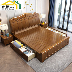 工厂直供现代简约实木床美式轻奢抽屉高箱床纯手工描金...