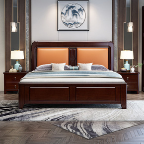 新中式金丝檀木床家用卧室1.8米定制大床现代简约软...